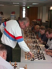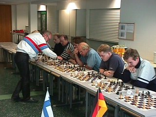 Hübnerin kolmas simultaani Mikkelissä -99. Suurmestari voitti jokaisen pelinsä.