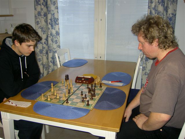 Henri Mynttinen (vas.) varmisti talviturnauksen voiton viimeisen kierroksen tasapelillä Anssi Rahikaista vastaan.